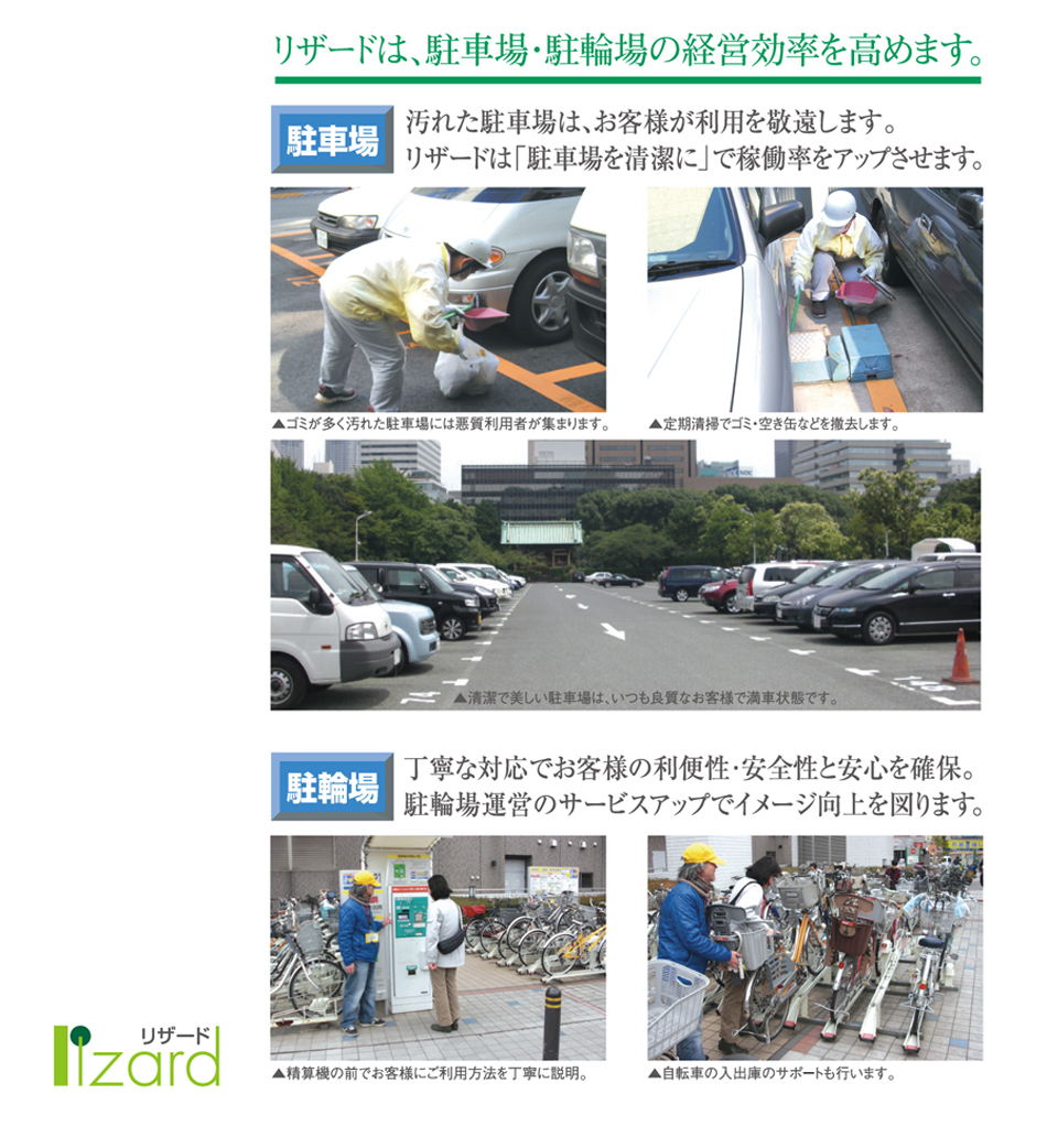 汚れた駐車場は、お客様が利用を敬遠します。リザードは「駐車場を清潔に」で稼働率をアップさせます。